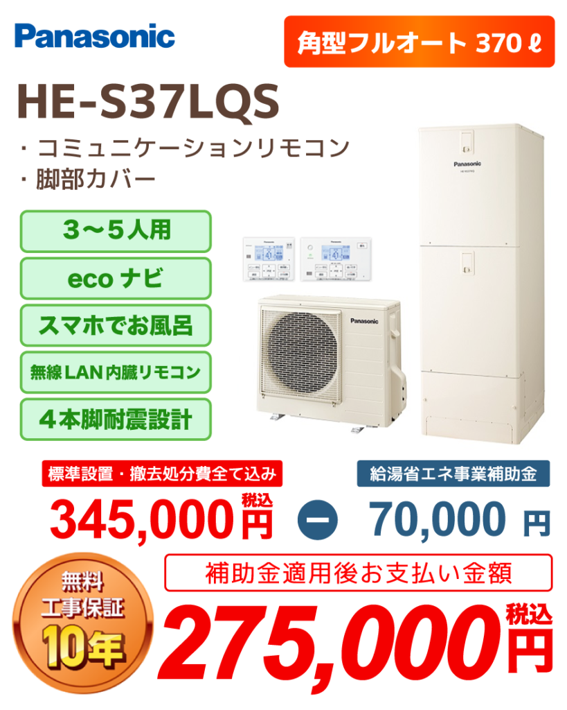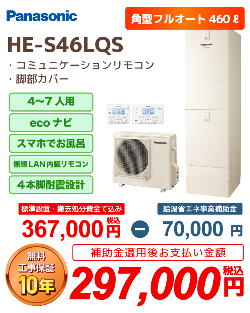 エコキュートの通常メーカー保証(1年~2年程度)を含めた10年間、機器本体に不具合が発生した際にこちらの保証にご加入頂いていれば10年間いつでも無償でご対応可能です。