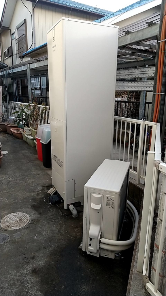 エコキュートの交換を行いました【現在は電気給湯器で年数が経っているためエコキュートへ買い替えを考えています... -