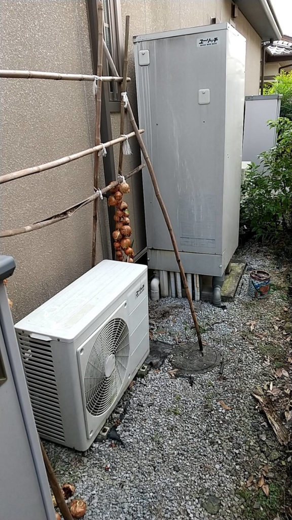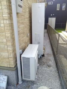 元々はコロナ製のエコキュートが設置されていたのですが、メーカーにこだわりはないとの事でしたので、一番早くご用意出来るパナソニック製のエコキュートでご成約となりました。