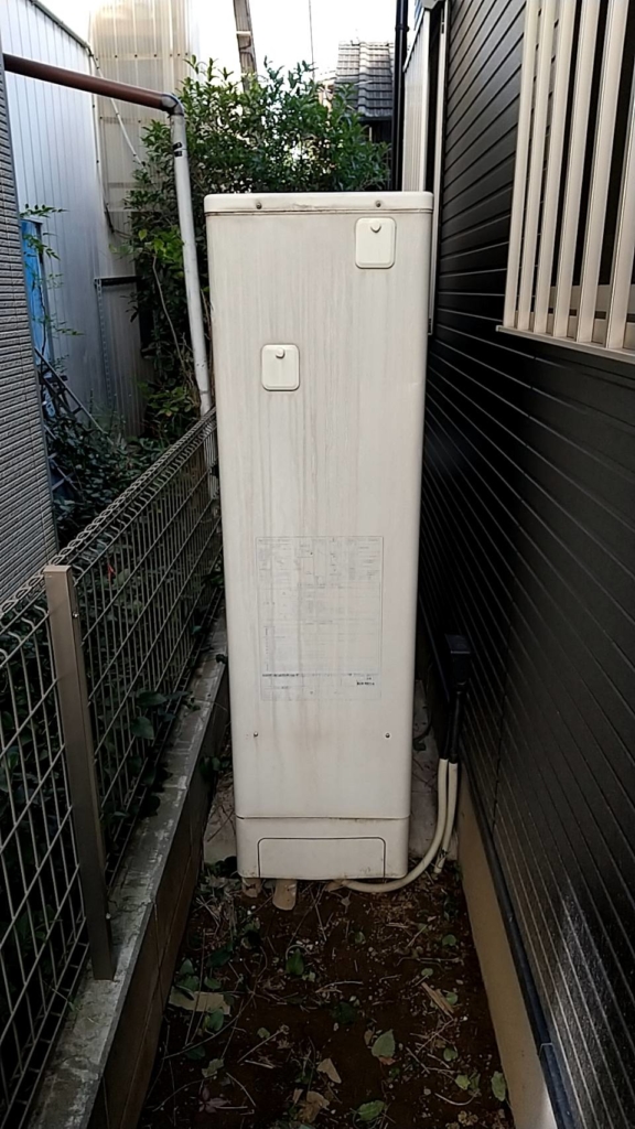 お見積りの為に現地調査でお伺いした所、容量300Lのエコキュートが設置されていました。