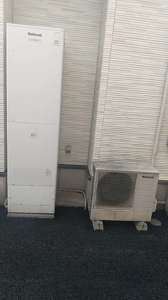 現地調査にお伺いし、エコキュートの脚周りを入念に確認したところ寸法の関係上、既設と同じパナソニック製のエコキュートを設置するのが確実であると判断致しました。