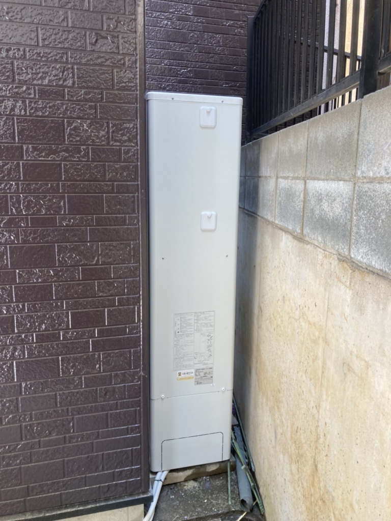 今流通している角型のエコキュートが既設のものより寸法が大きい為、新しく設置する機器は薄型でないと不可能である事がわかり、前方へ基礎を拡張する事で無事に薄型のエコキュートを設置する事が出来ました。