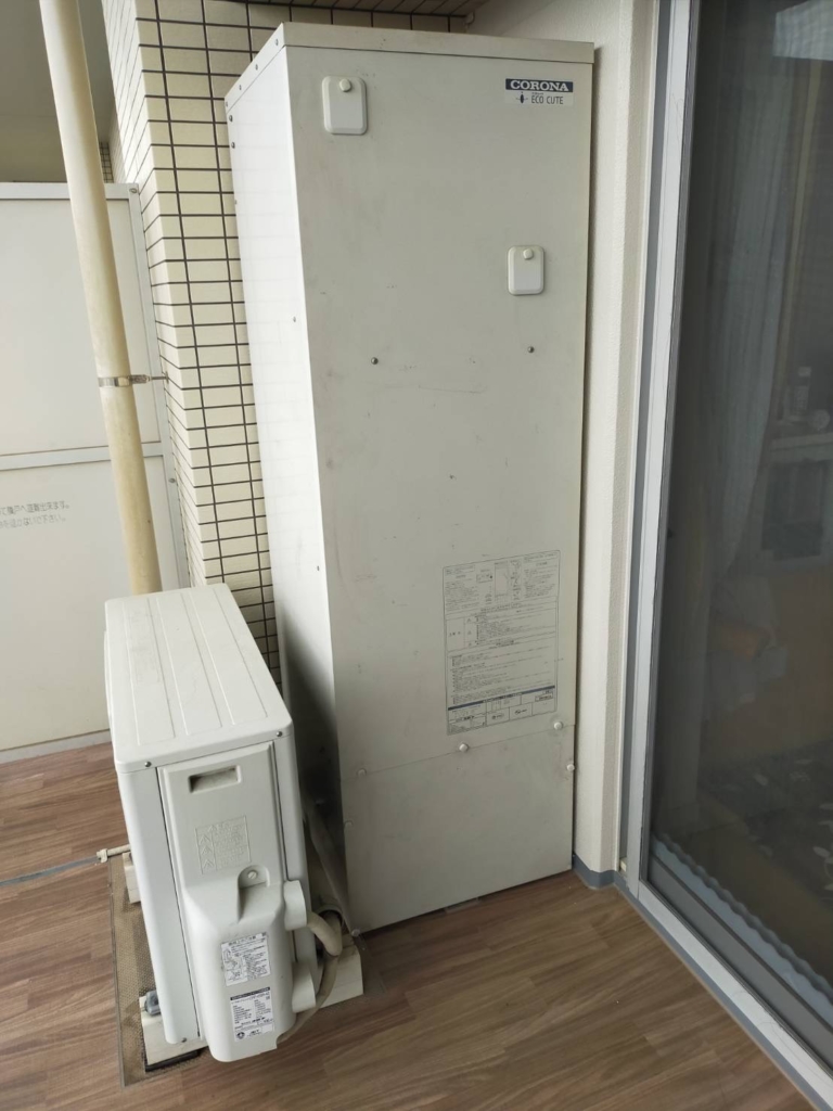 設置されていたエコキュートが300ℓタイプで、戸建てで流通している370ℓのものよりも少しコンパクトな容量になります。