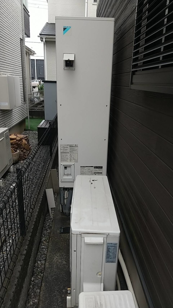 現在ご使用されているエコキュートはダイキン製で、パネルを交換されているようで型番の確認は出来なかったのですが、既設と同じダイキン製の角型・370ℓで交換する事となりました。