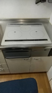 エコキュートが設置されている場所自体は作業スペースはあるのですが、搬入搬出経路に階段があり既設のエコキュートの寸法的に通る事が出来ず、室内を通しての撤去となりました。