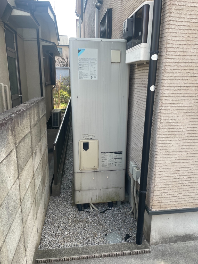 三層管から水漏れが起きている状態で、最初は三層管だけ交換することを前提に考えておられたのですが、設置から14年経過しているので今後の事も考えエコキュート本体の交換をする事になりました。