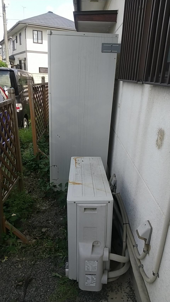 まずは既設の型番を確認するとコロナ製の370ℓをご使用されている事が分かり、エコキュートを交換するにあたりサイズを460ℓに上げたいとのご希望をいただきました。