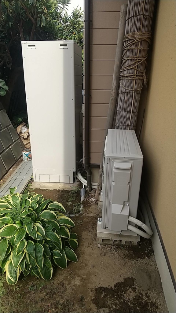 以前エコキュート交換をご依頼いただいたお客様からご紹介をいただき、詳しくお話をお伺いすると床暖房が使用出来るタイプのものが設置されており、今後床暖房は使わないので通常のエコキュートで問題ないとの事でした。