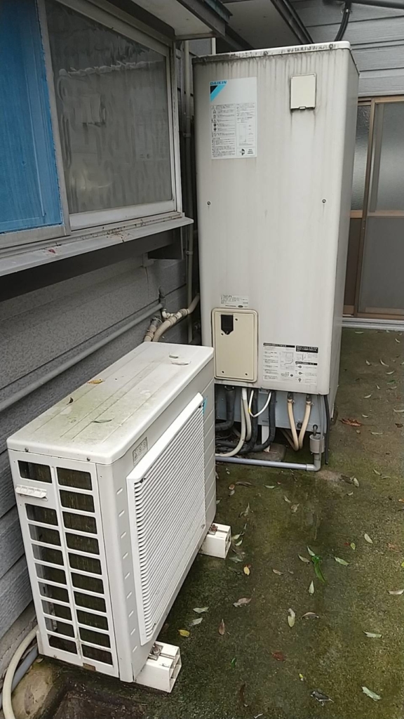 正確な金額をご提示する為に早速現地調査にお伺いしたところ、機器を搬入搬出する経路は特に問題がなく、貯湯タンクの脚が水平を取るためにモルタルで高さを合わせているような設置状態になっておりましたが、交換作業時に簡単に取れそうだった為こちらも問題ありませんでした。