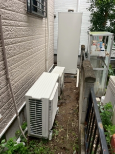 今回の現場ではエコキュート周辺のスペースが十分ありましたので標準工事費で作業を行いました。