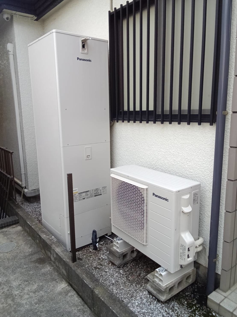 既設のエコキュートには暖房機能がついておりましたが、今回は特に不要との事で暖房機能なしのコストパフォーマンスが高いパナソニック製で交換工事となりました。