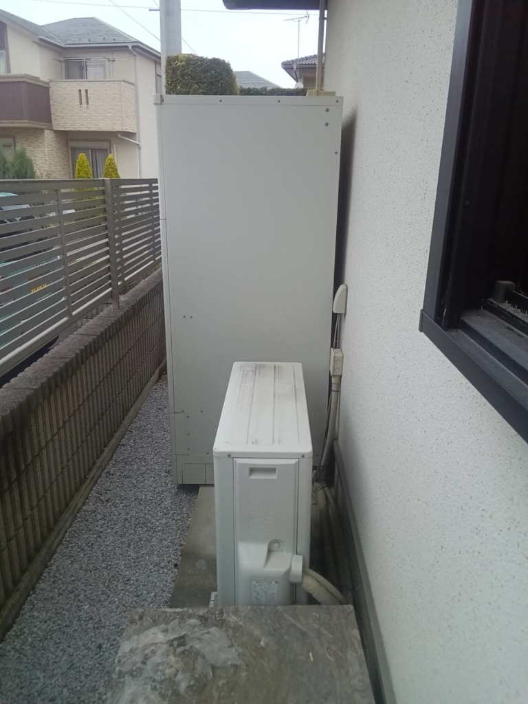 現地調査にお伺いし、お自宅周りの搬入経路を確認したところ、エコキュート近くのフェンスを外し駐車場側から搬入搬出するのが一番安全に行える事が分かりました。