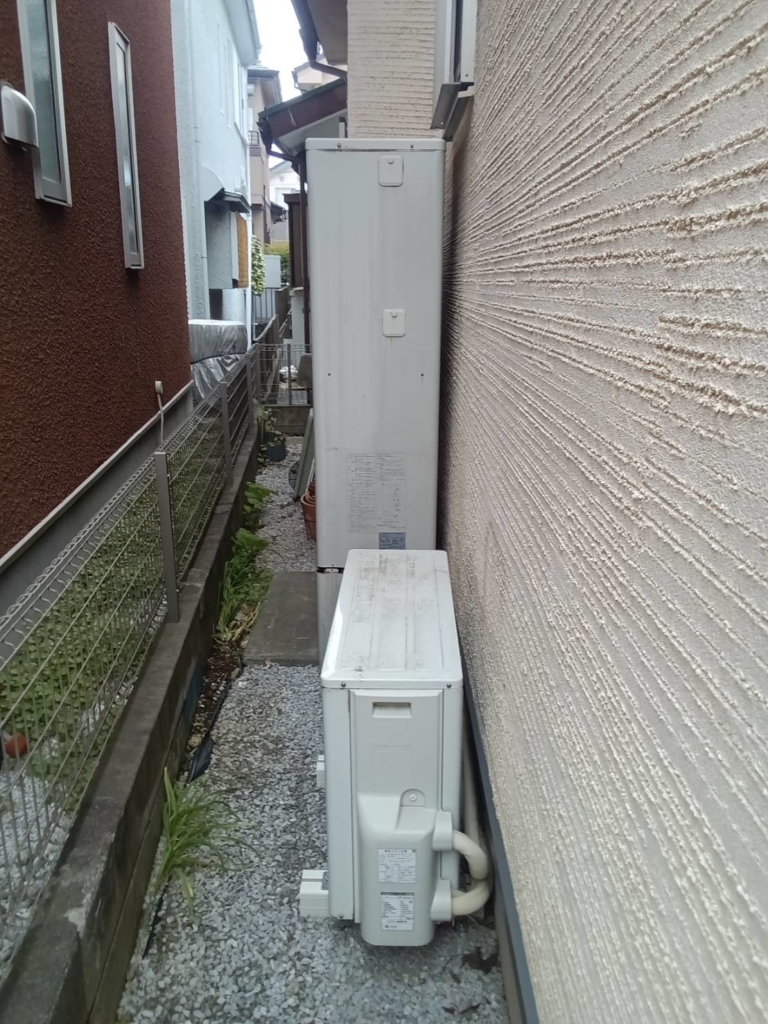 現在薄型のエコキュートが設置されており、機器が設置されているスペースが極端に狭いという事はなく、お隣様との境界線上にあるフェンスを一時的に外して作業が行える事が確認取れましたので、追加費用は無く標準工事費ご成約となりました。