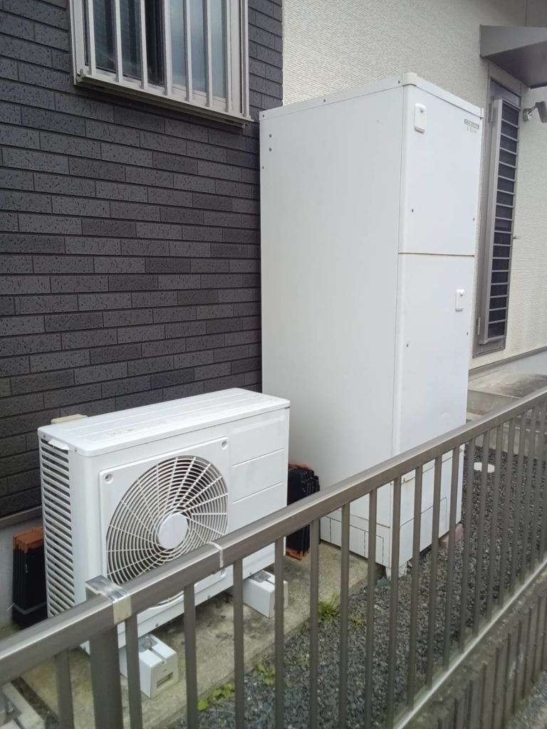 湯張りが出来ない状態との事でしたので早速現地調査に伺い、作業時にエコキュート前方のフェンスを外せば問題なく作業が行える事が確認出来ましたので、ホームページに載っているパナソニック製のエコキュートを標準工事費でご成約となりました。