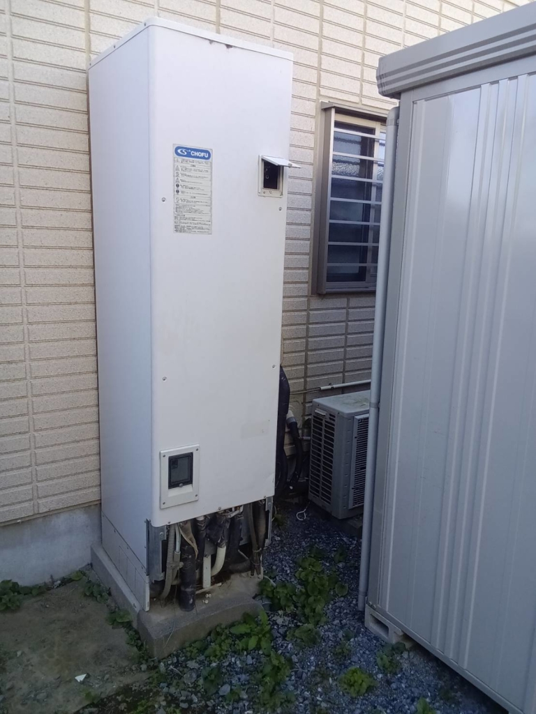 先に長府製作所製とオススメのパナソニック製でお見積りをご案内させていただき、現地調査に伺いしたところ基礎の部分が欠けているところがあり、4本足の機種は安全の為設置が不可である事が分かりました。