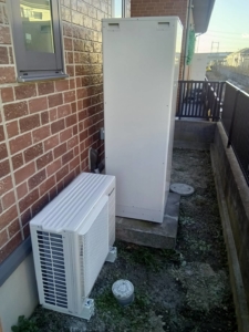 エコキュートが設置されている場所はスペースが広く、搬入・搬出を含め問題なく作業が行える現場でしたので、ホームページ掲載通りの標準工事費にて全ての工事を行う事が出来ました。