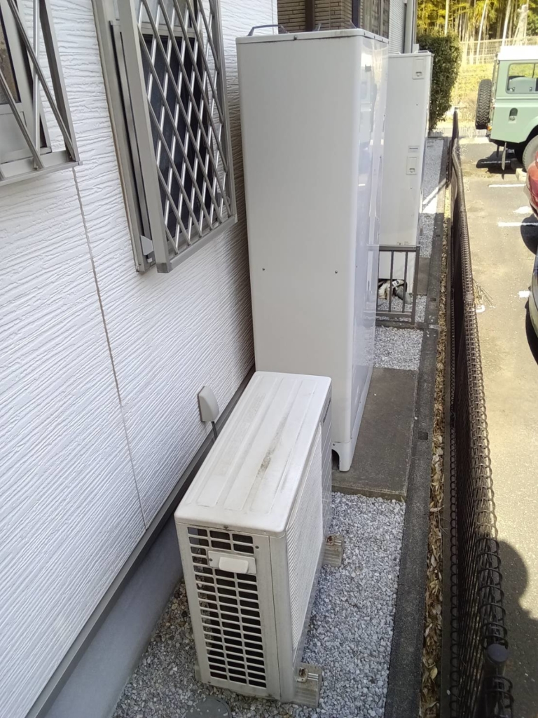 薄型タイプが設置されている現場はエコキュートが設置されている場所が狭小であったり、搬入搬出通路に物置などがあり運び込むのが難しい事が多いのですが、今回はエコキュート設置場所も問題なく、ホームページ掲載通りの標準工事費にてご成約となりました。