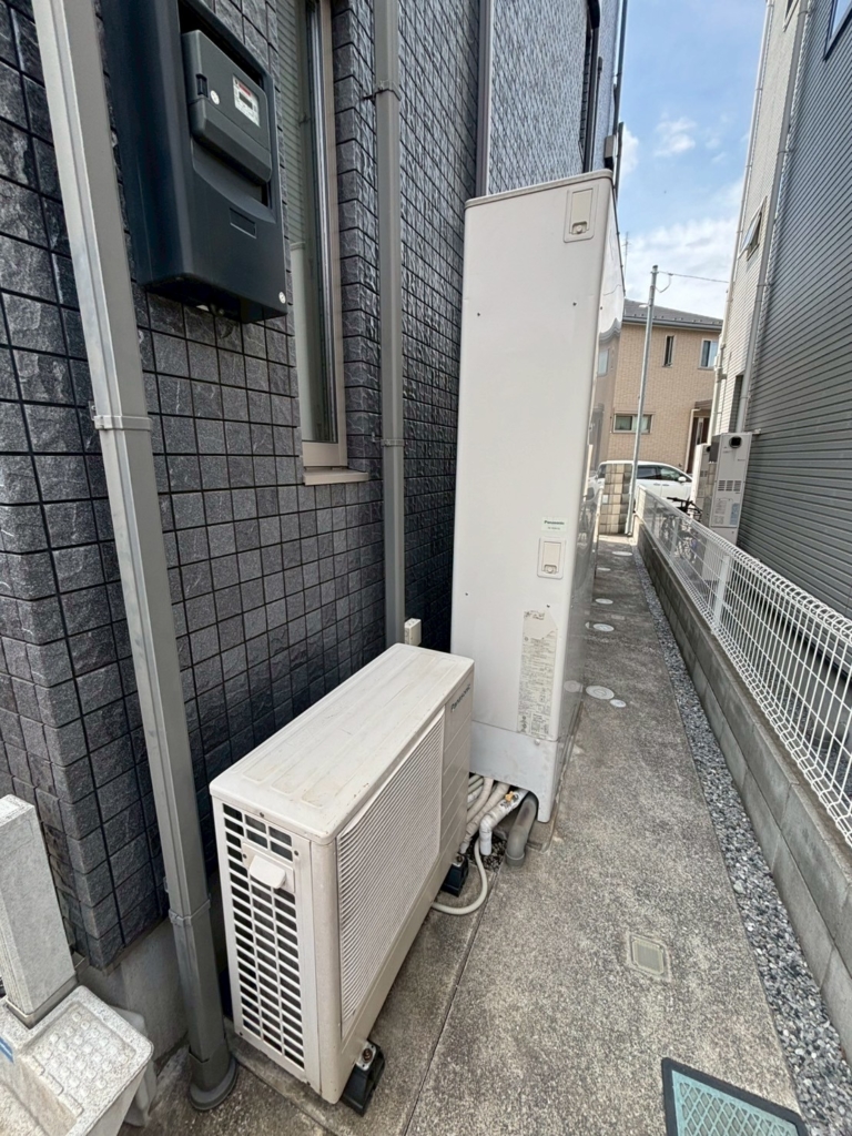 元々お使いのエコキュートは薄型で、可能であれば角型を設置したいとの事で早速現地調査にお伺いいたしました。