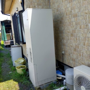 薄型が設置されており、基礎や搬入搬出経路をしっかりと確認し今使っているエコキュートと同じメーカーのパナソニック製なら使い慣れているので安心できるとの事でご成約となりました。
